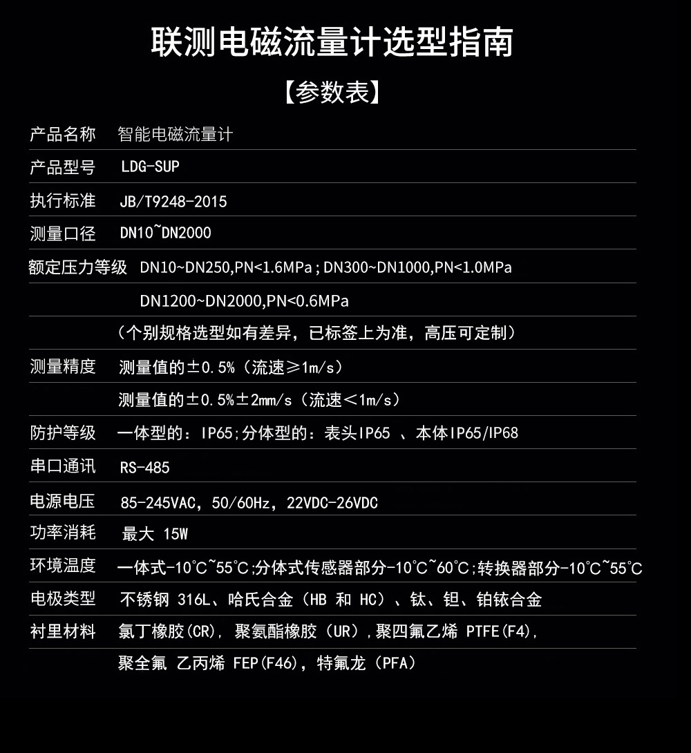 簡要描述:聯測儀表LDG-SIN不銹鋼電磁流量計適用于化工助劑、海綿城市、給水排水、水利灌溉、水處理、污水處理(環保污水控制、化工污水、電鍍污水)、造紙漿液(紙漿)、泥漿、醫藥原料、食品等工農業的生產公司過程流量測量和控制,標配485通訊功能。