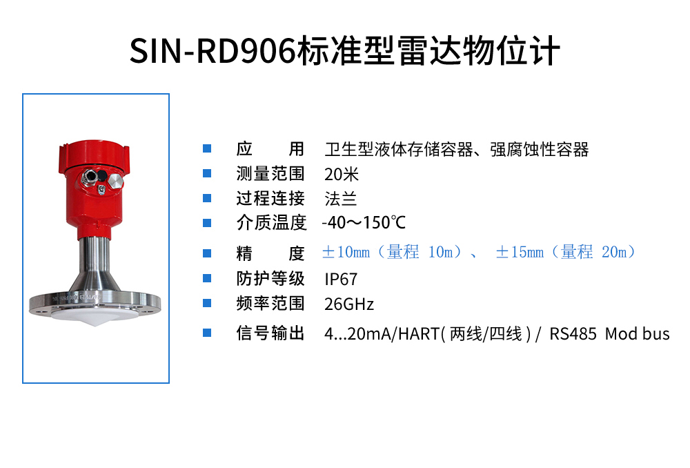 當前位置:首頁 > 雷達液位計 > SIN-RD906雷達液位計_適用于衛(wèi)生型液體存儲容器_
