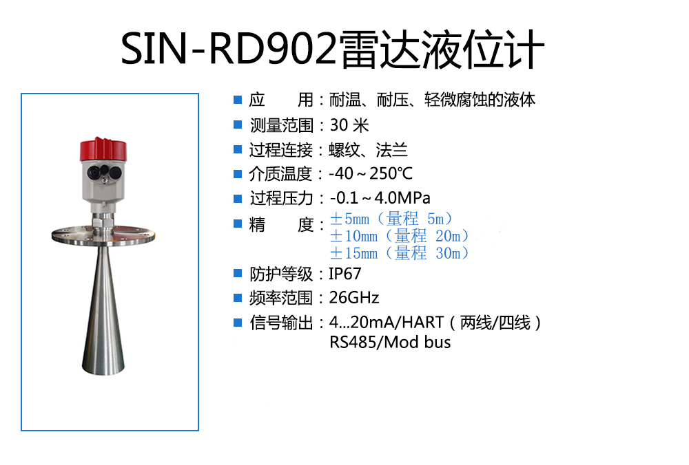 當(dāng)前位置:首頁(yè) > 雷達(dá)液位計(jì) > 聯(lián)測(cè)_SIN-RD902雷達(dá)液位計(jì)_適用于高溫高壓的液體_
