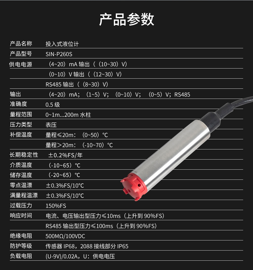聯測_SIN-P260S新款投入式液位計/水位計_